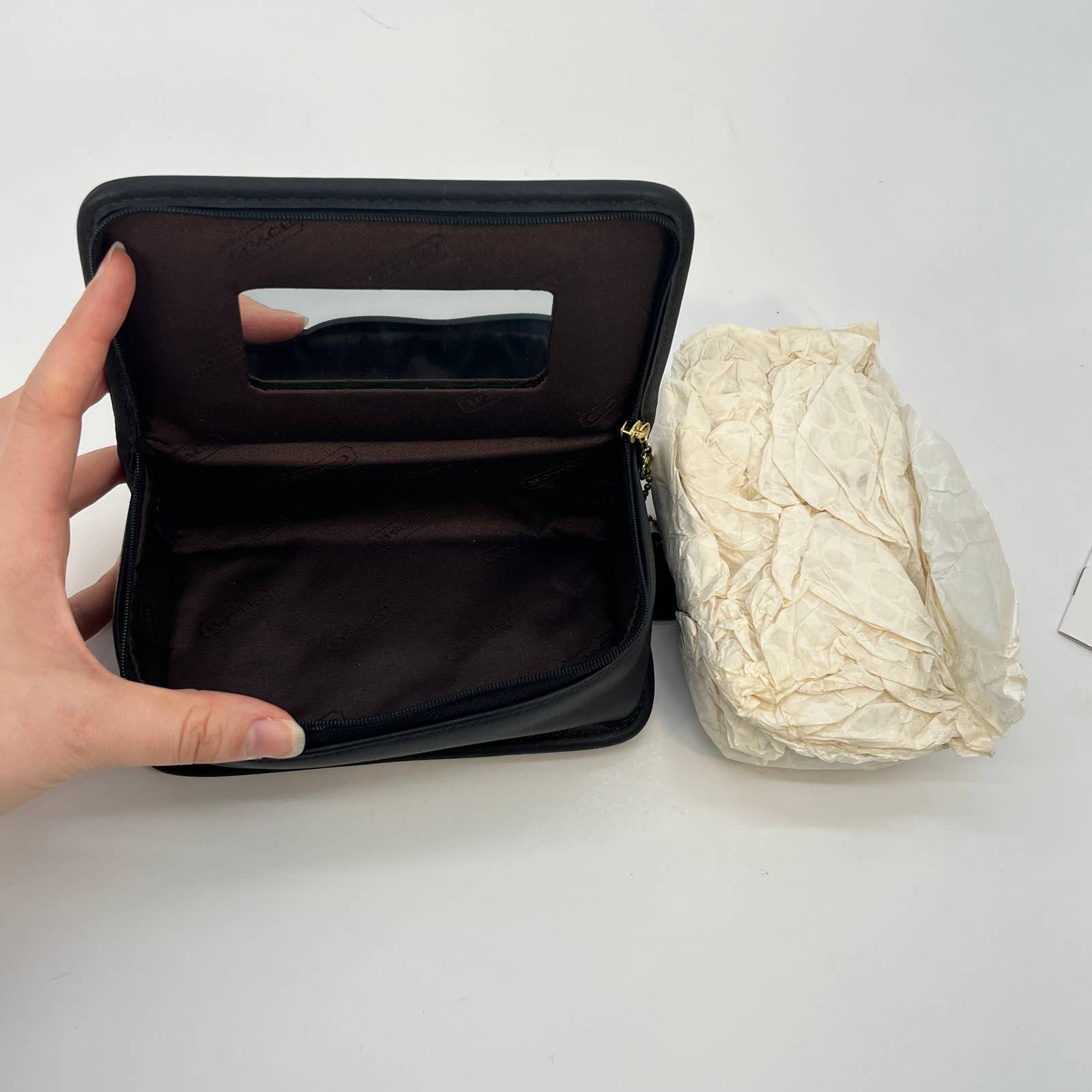 LIKE NEW Vintage Coach #6925 Chubby Case with Mirror in Black Leather