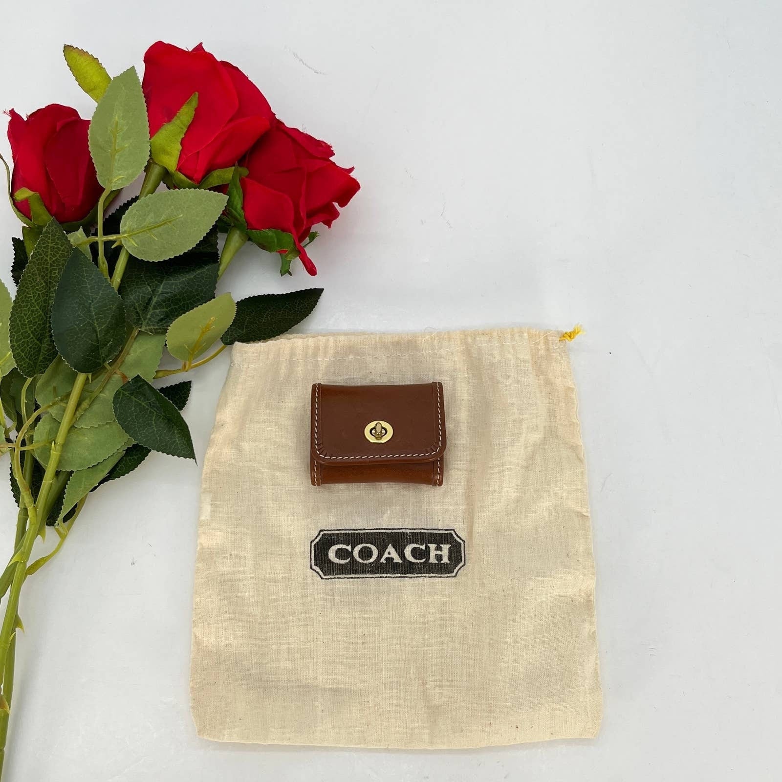 RARE LIKE NEW Vintage Coach Mini Turnlock Sticky Note Holder in British Tan Leather