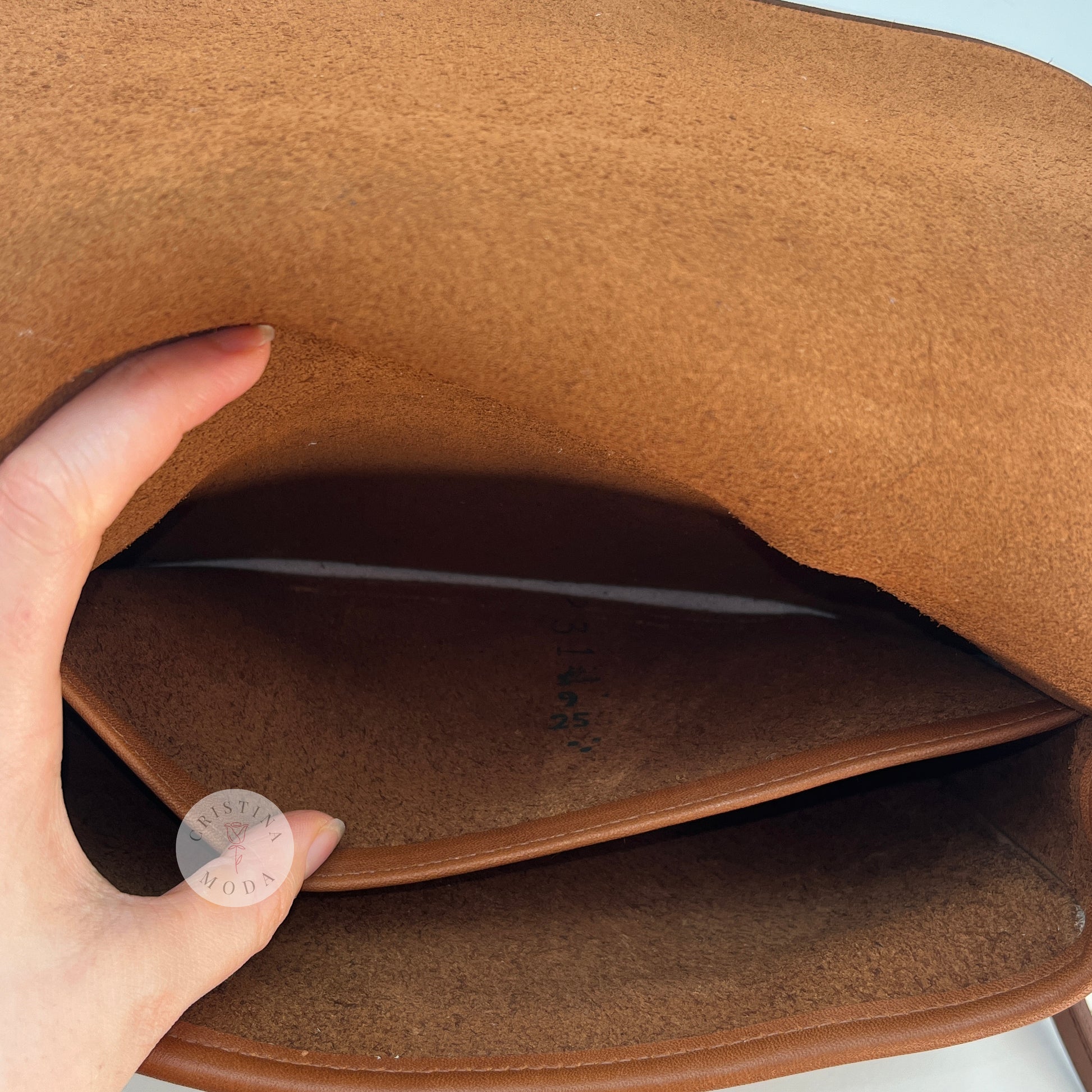 Please note: the number markings on the interior of the inside back pocket are just the leather lot markings, which we see fairly often in these vintage bags (please see close up photo)
