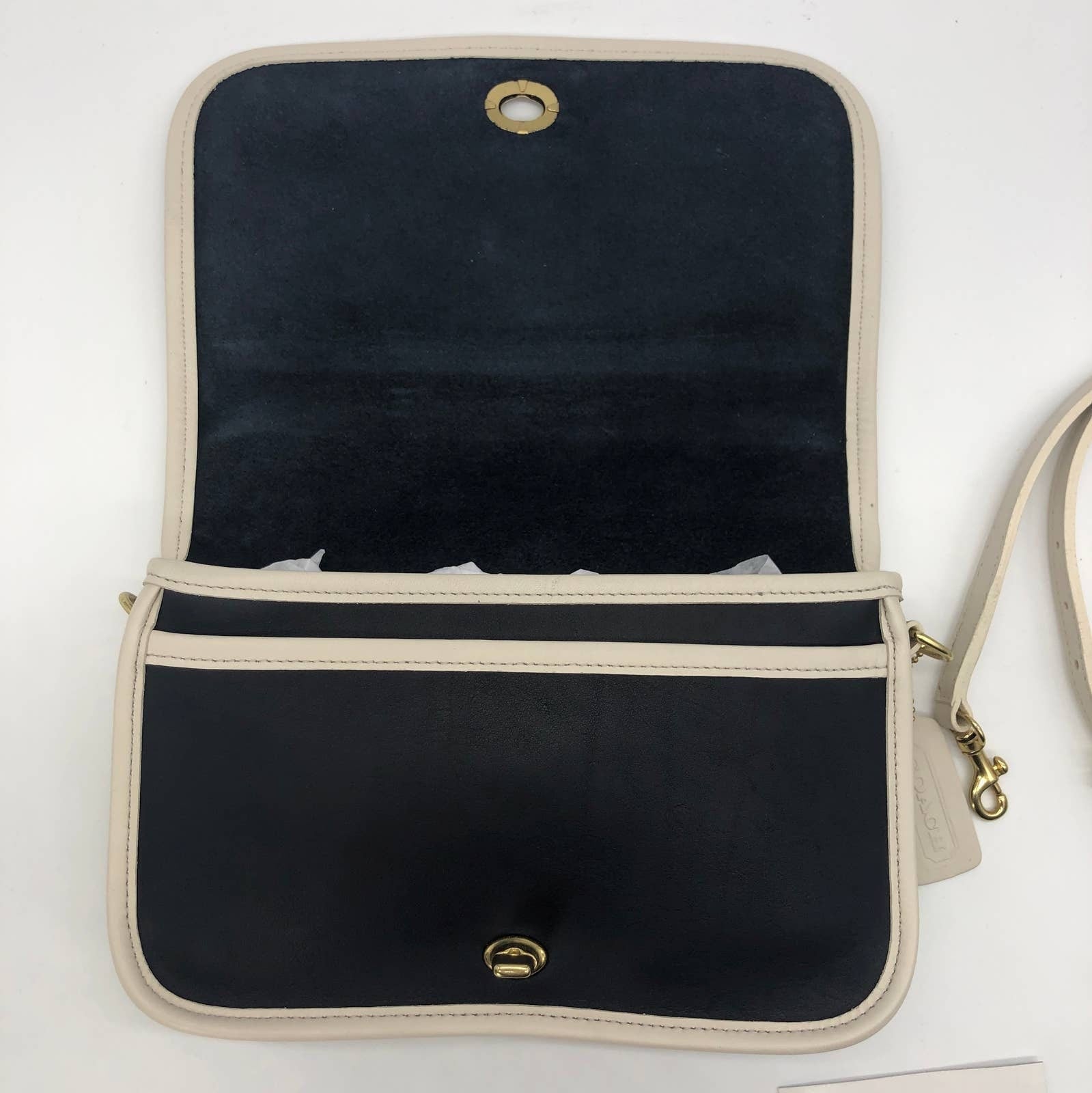 LIKE NEW Vintage Coach #9668 Spectator Pocket Purse in Navy & White Leather