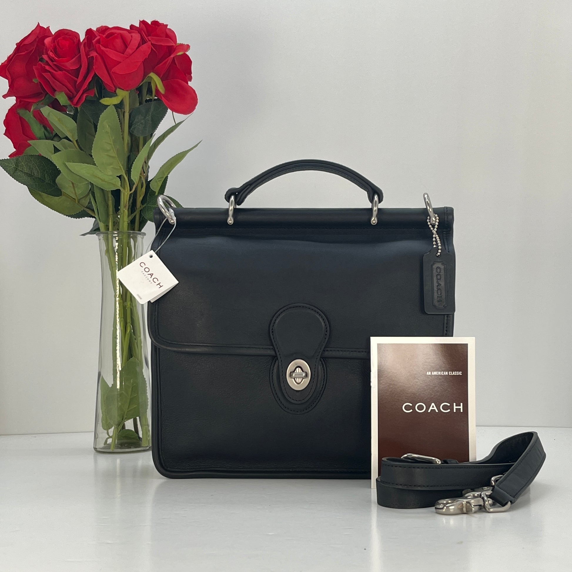 NEW WITH TAGS Vintage Coach #9927 Willis Bag in Black Leather & Nickel Hardware