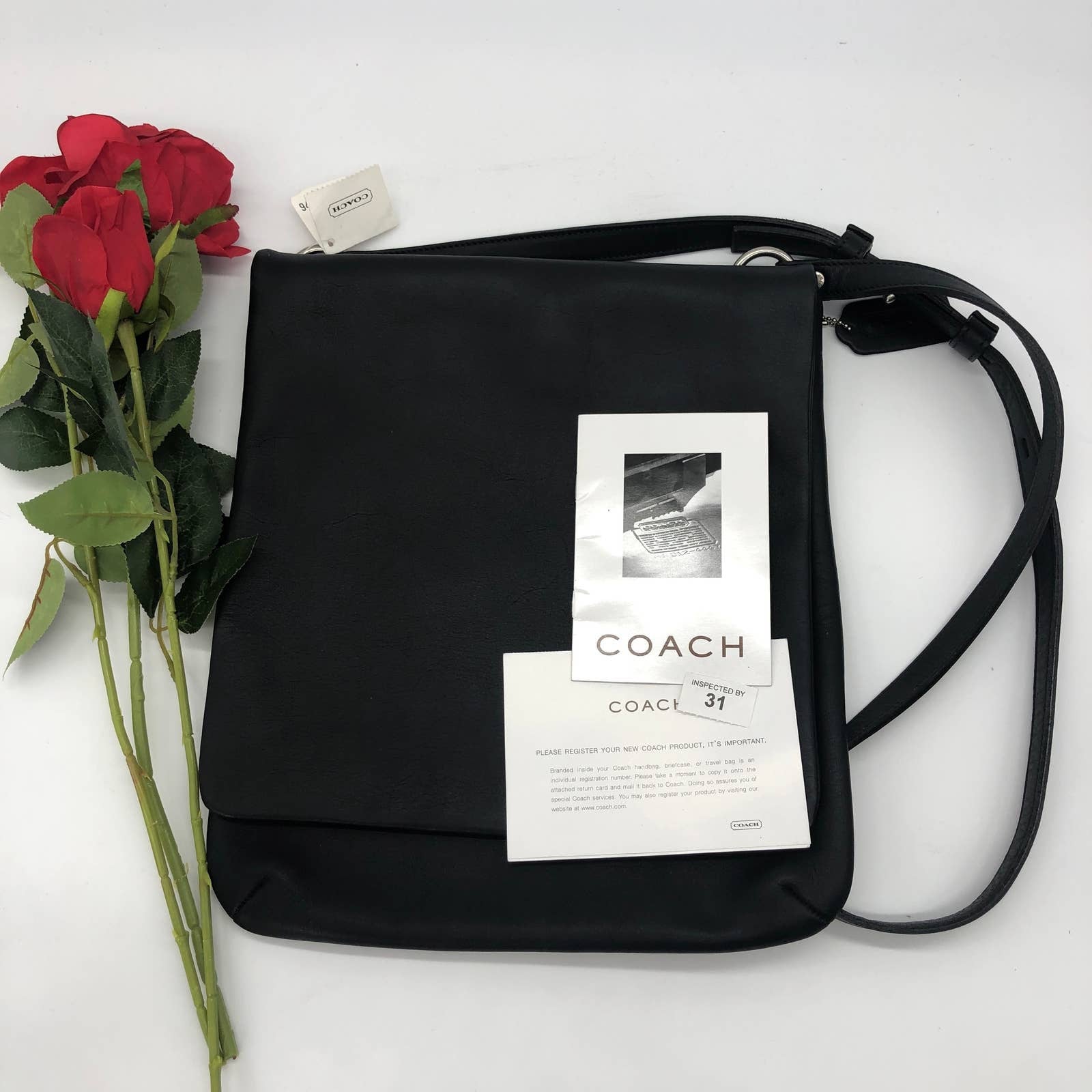 NEW WITH TAGS Vintage Coach #9458 Chelsea Flat Hippie Bag in Black Leather & Nickel Hardware
