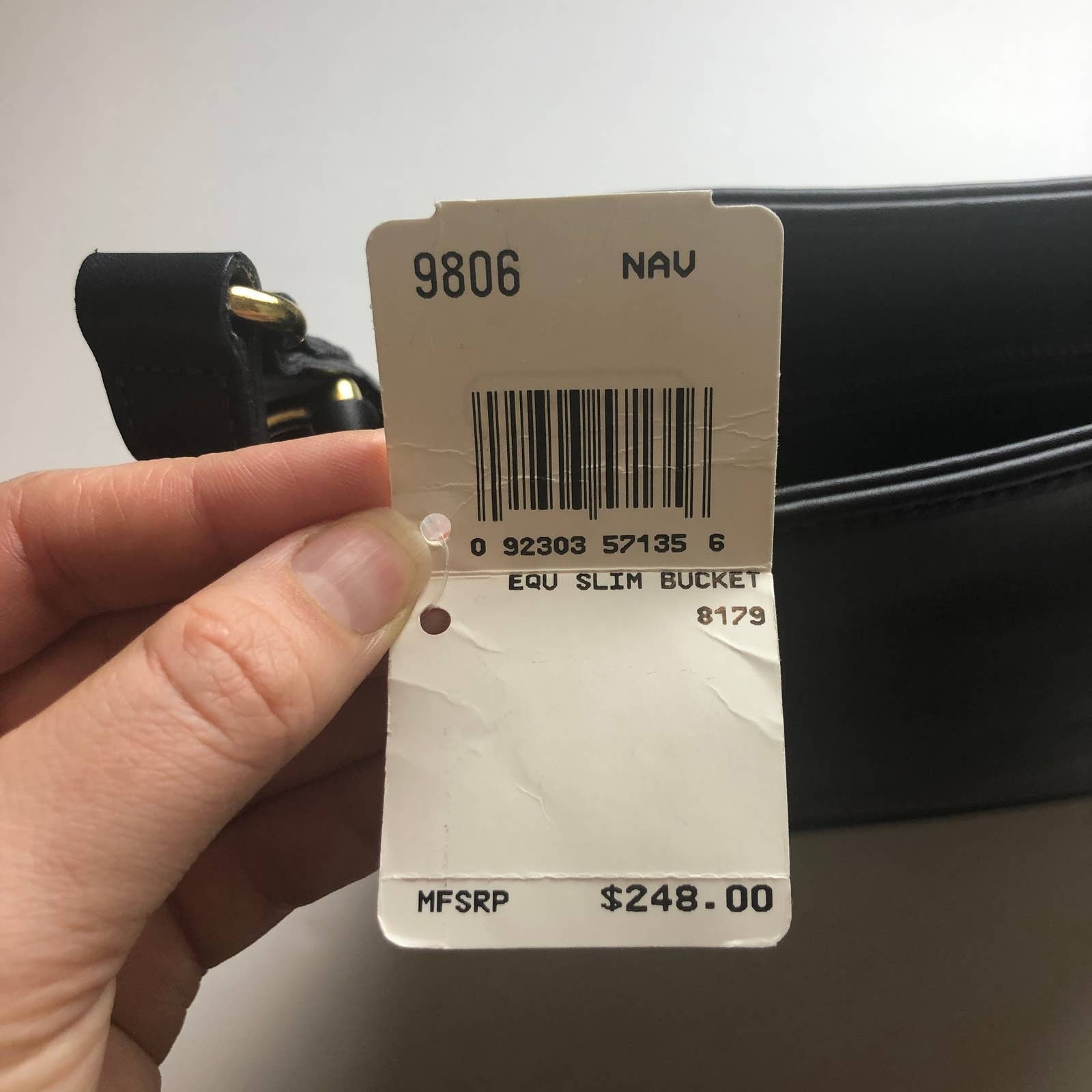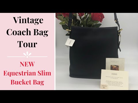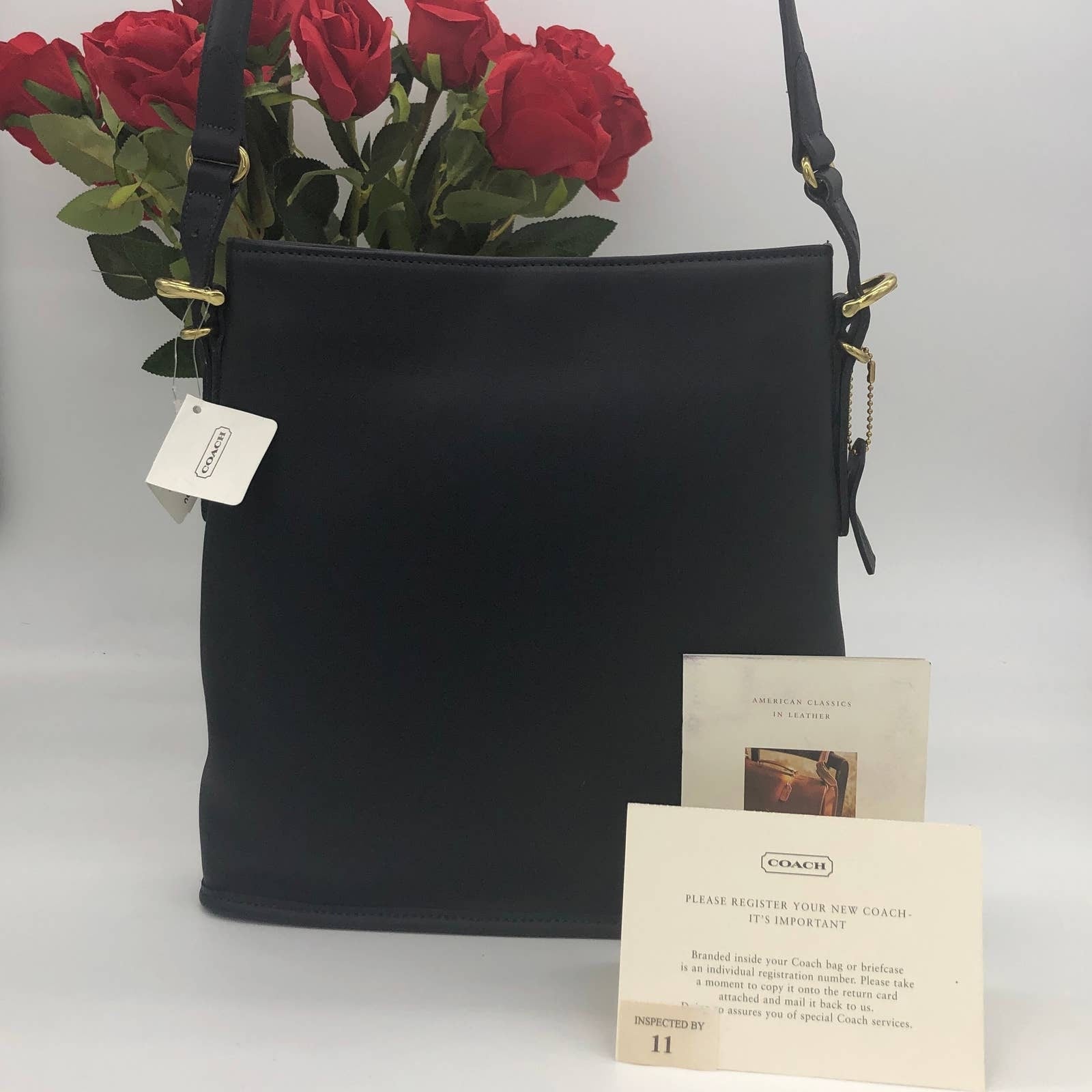 NEW WITH TAGS Vintage Coach #9806 Equestrian Slim Bucket Bag in Navy Blue Leather