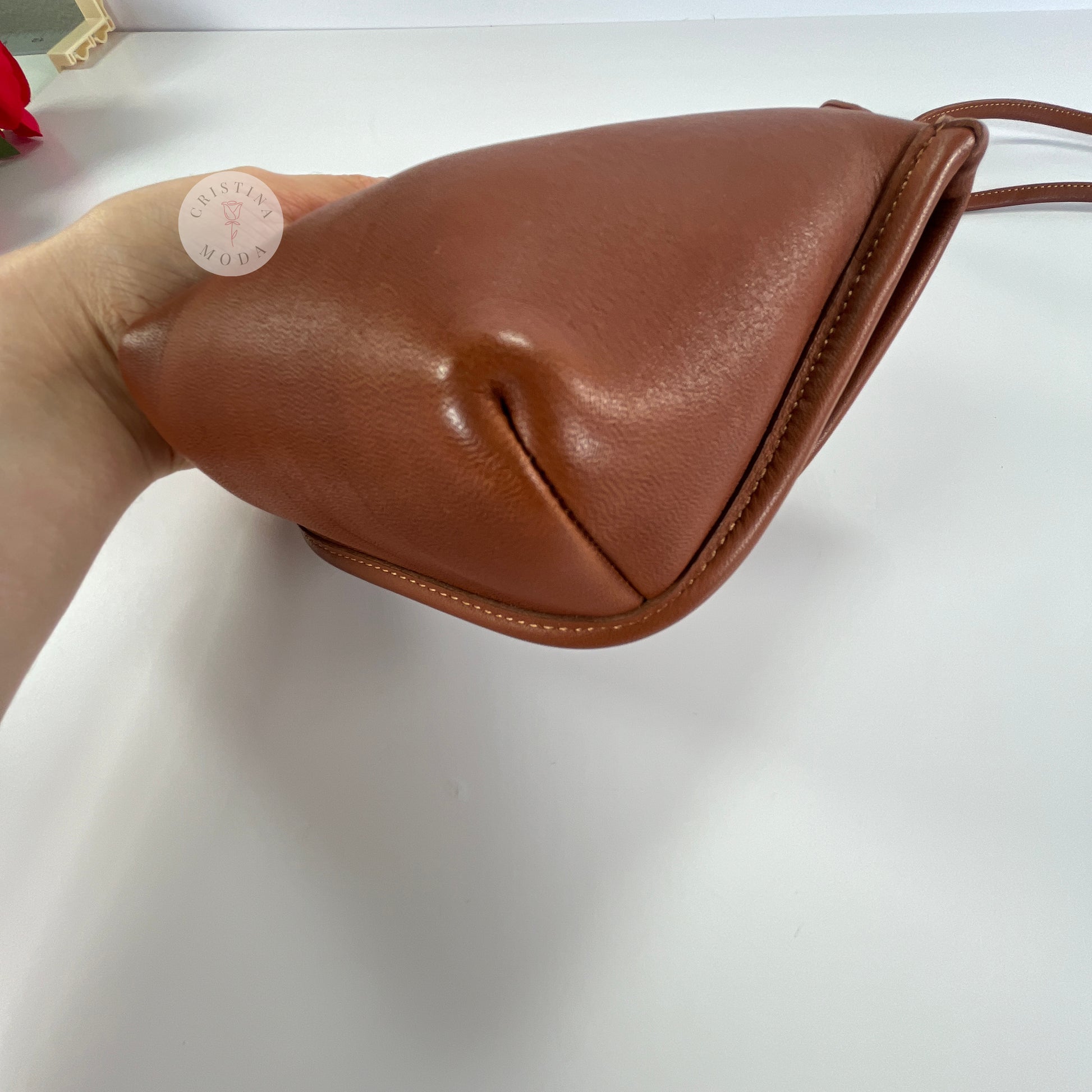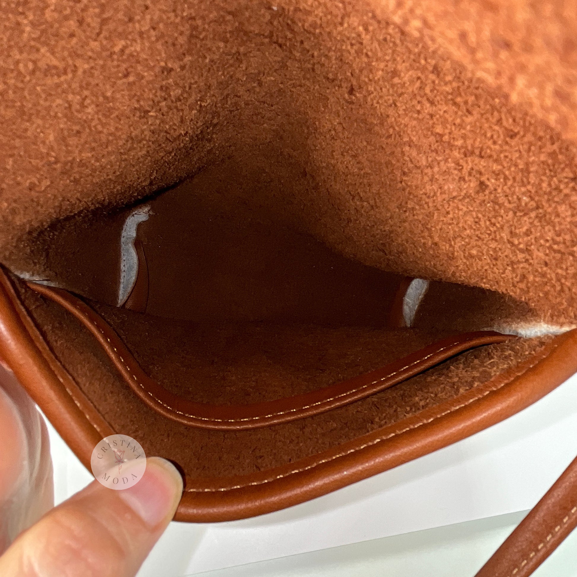 Condition- new with tags condition (please note part of the price tag is torn off), as shown in photos. Please note there is a tiny faint superficial scratch in the surface of the leather under the front flap of the bag that appears to be natural to the leather, please see close up photo.