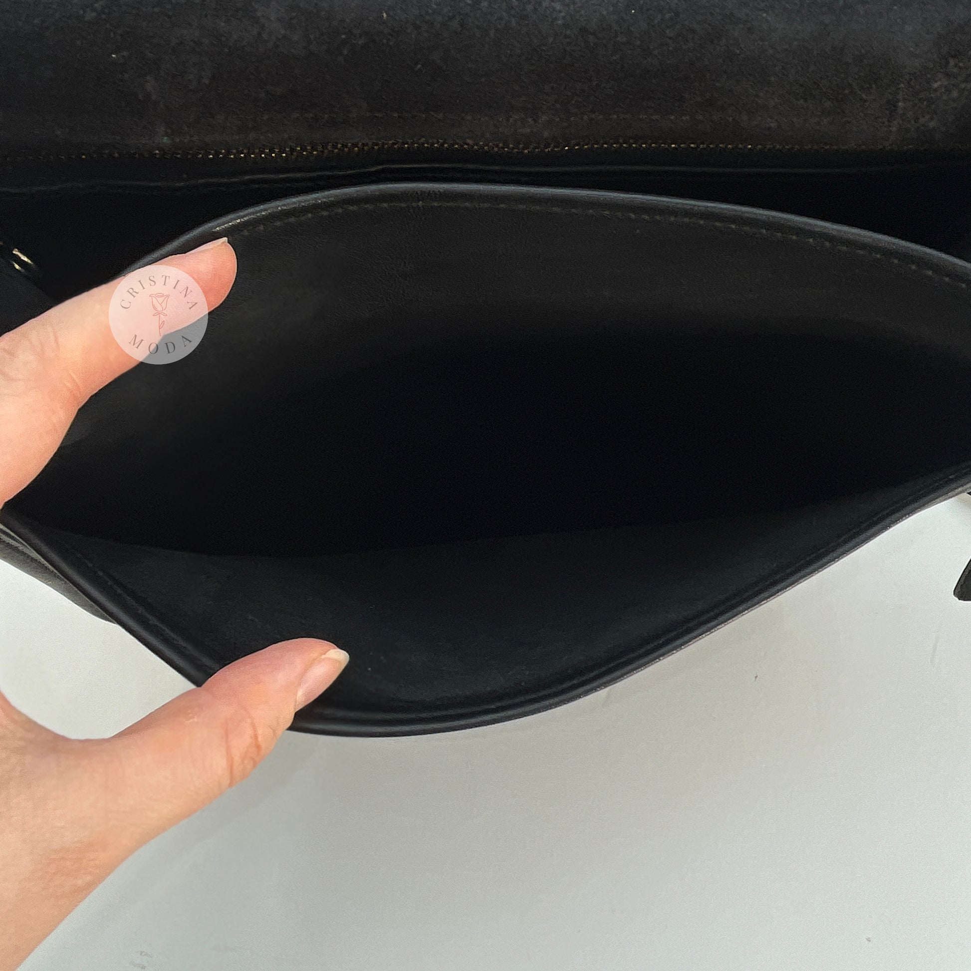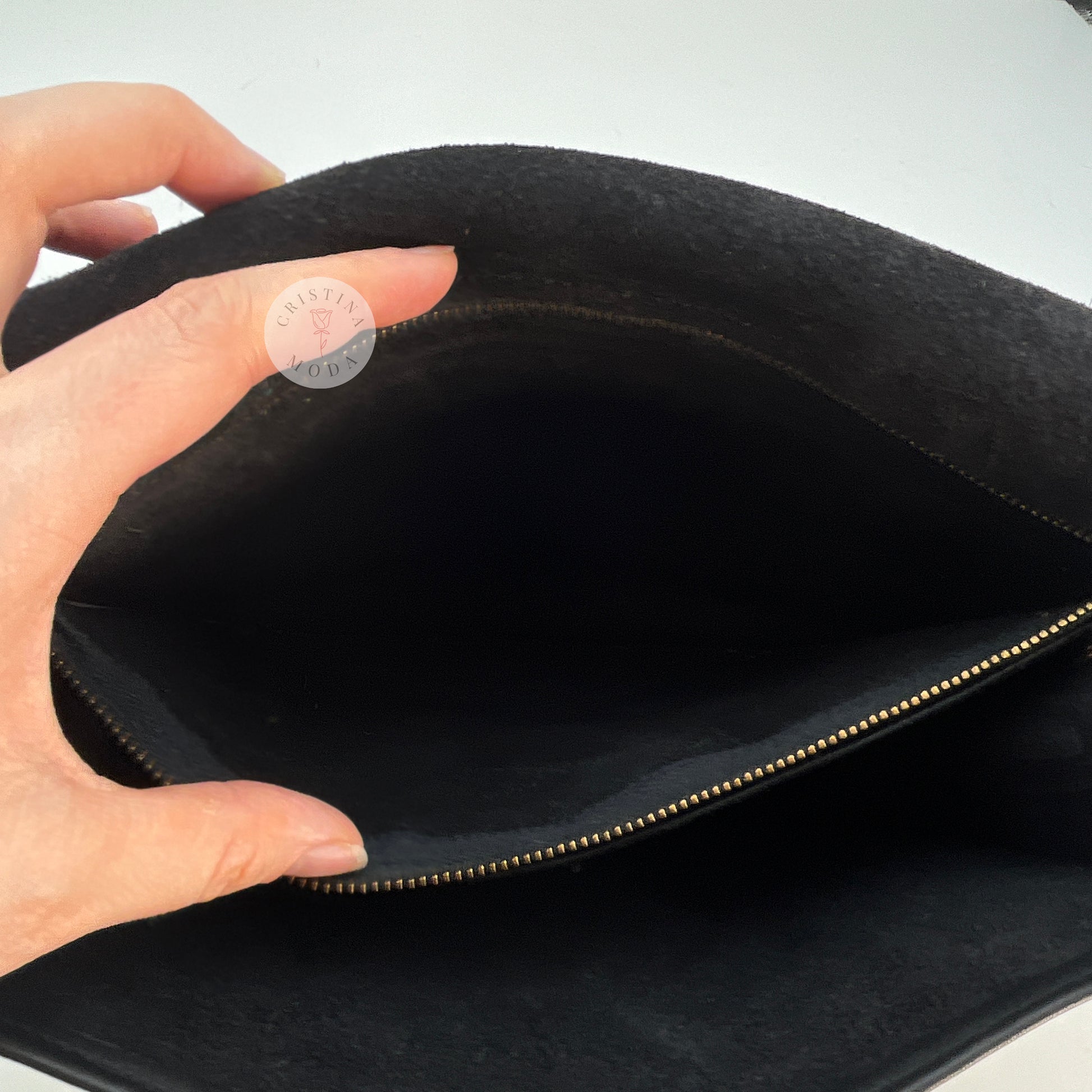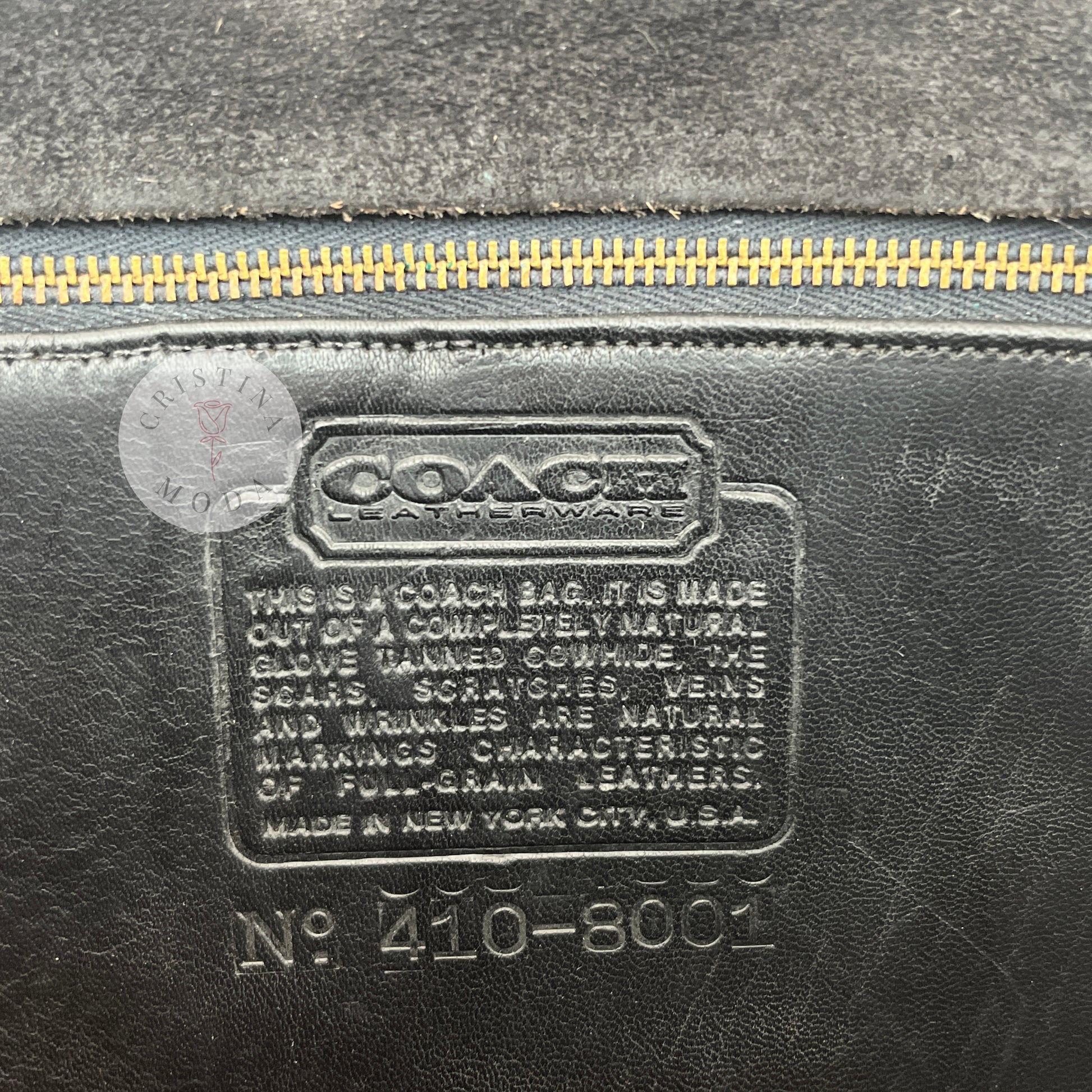 Condition- some mild normal wear throughout, please see photos. There's also a small section of the seam along the back zip pocket that was professionally repaired/re-sewn by a cobbler (please note the stitching isn't 100% straight/perfect), please see close up photo. Overall, nice vintage condition!