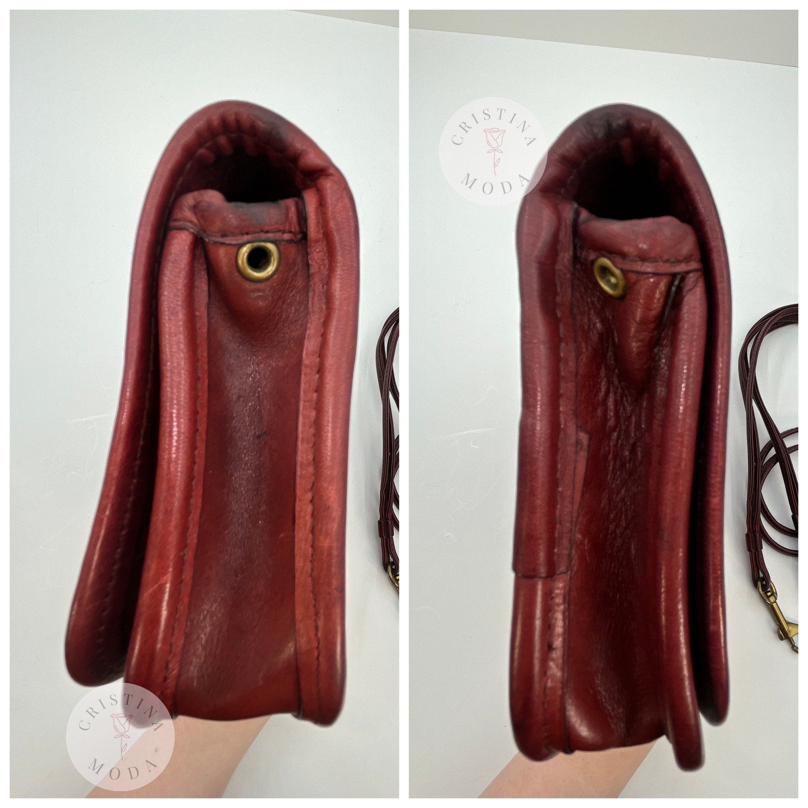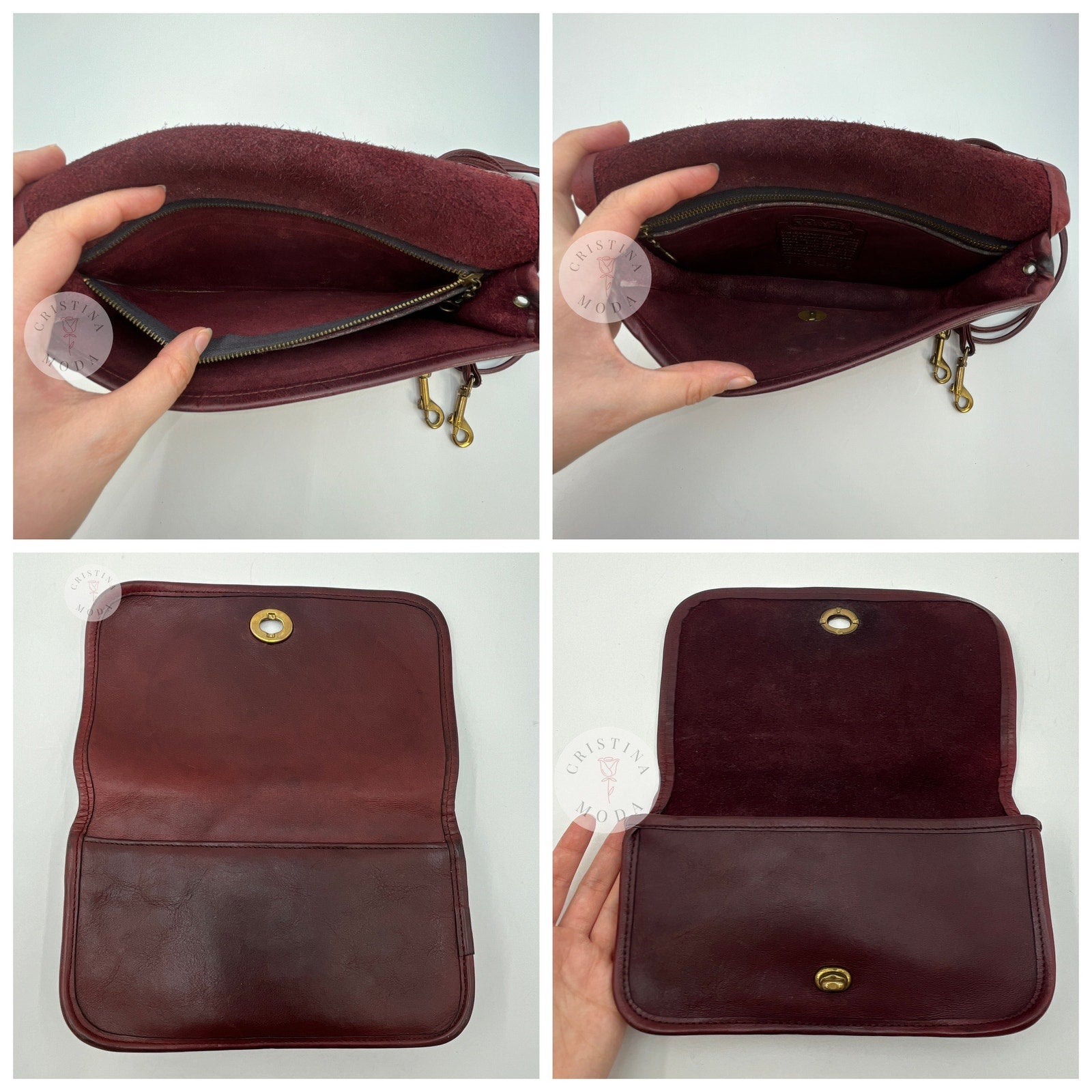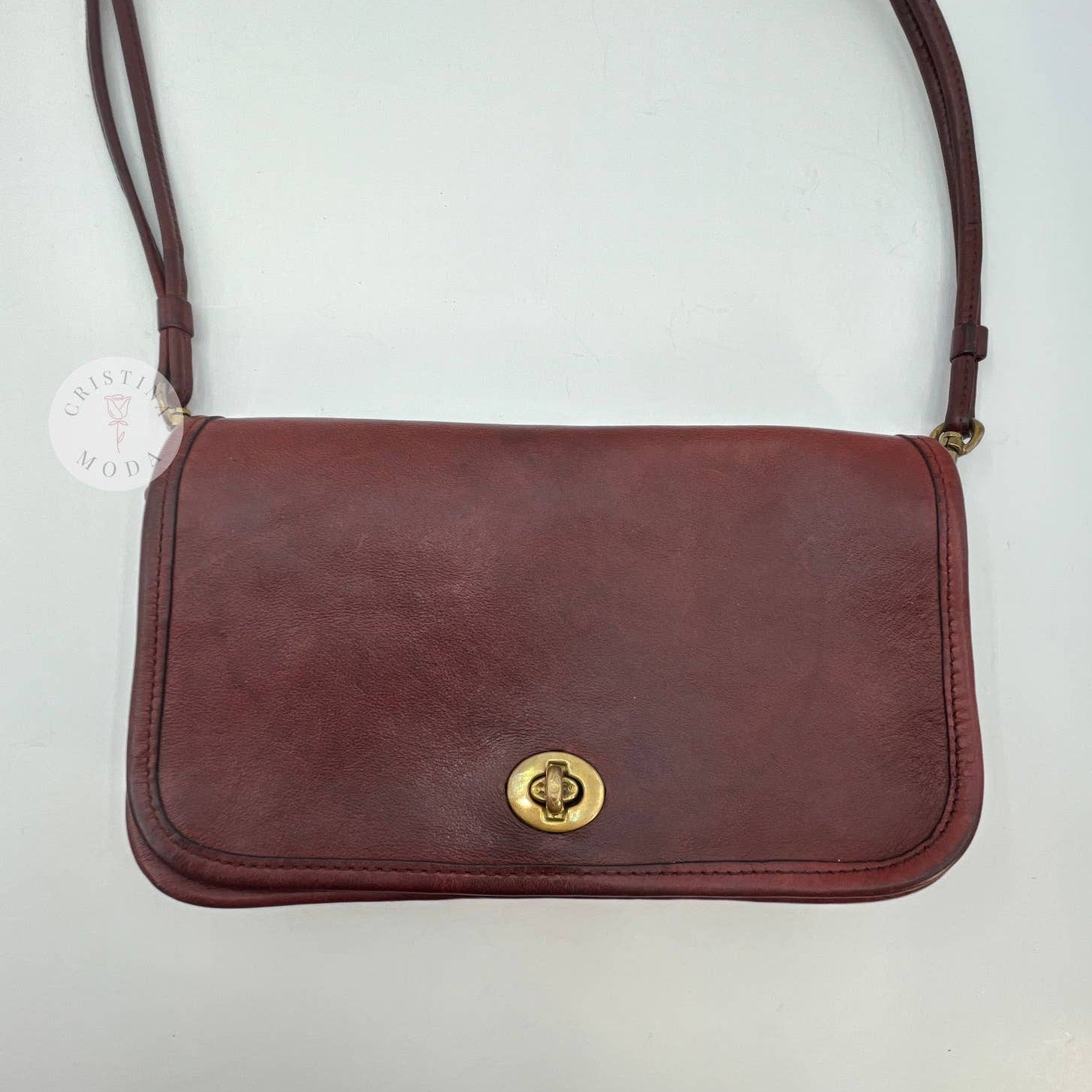 Vintage Coach #9375 Mini Clutch/Early Dinky Bag with Double Strap in Burgundy Leather