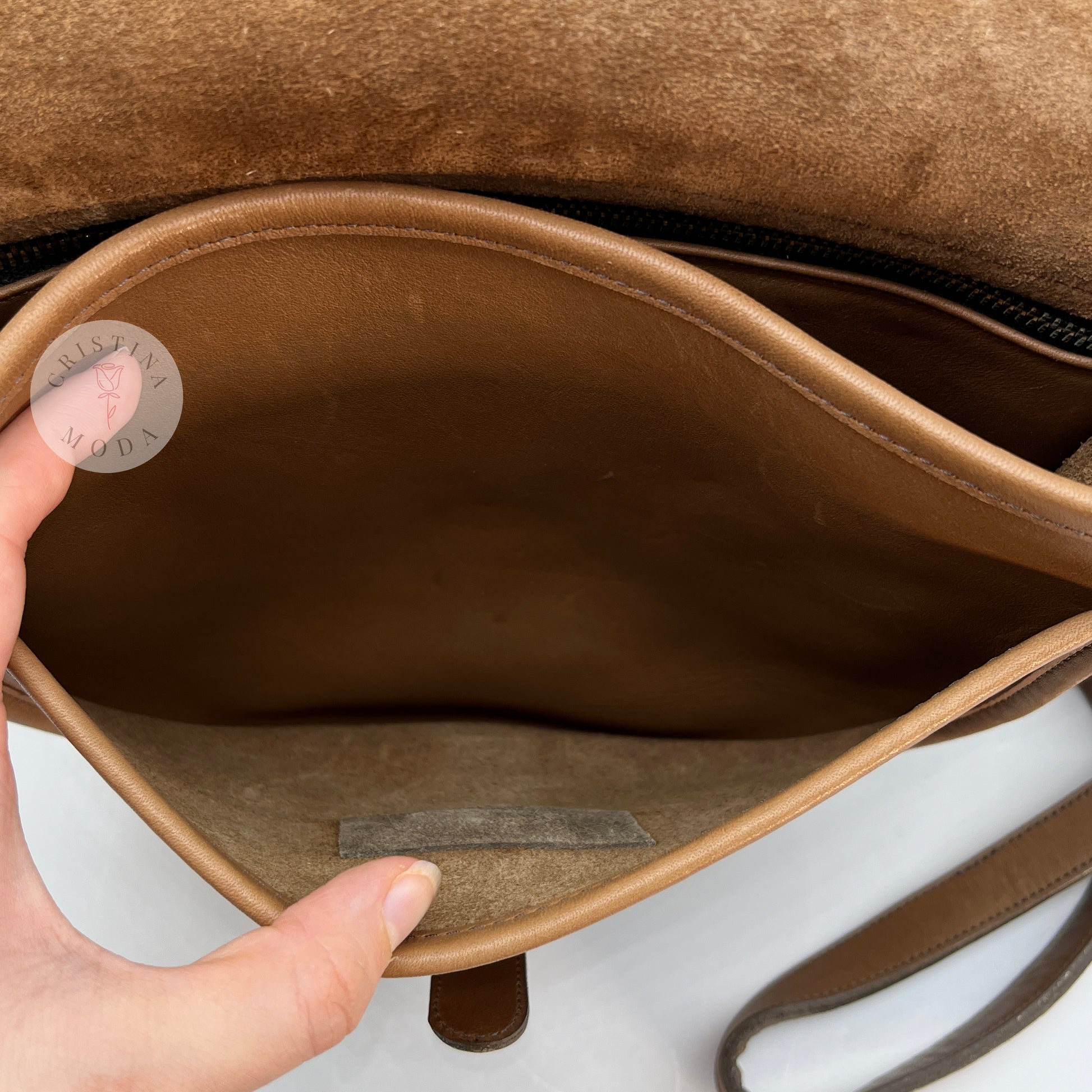 Condition- bag appears to be in unused/like new condition, but please note there may be some very mild wear throughout due to age of the bag, please see photos. There's also a faint mark in the leather on the lower corner edge of the bag, please see close up photo. Overall, nice vintage condition!