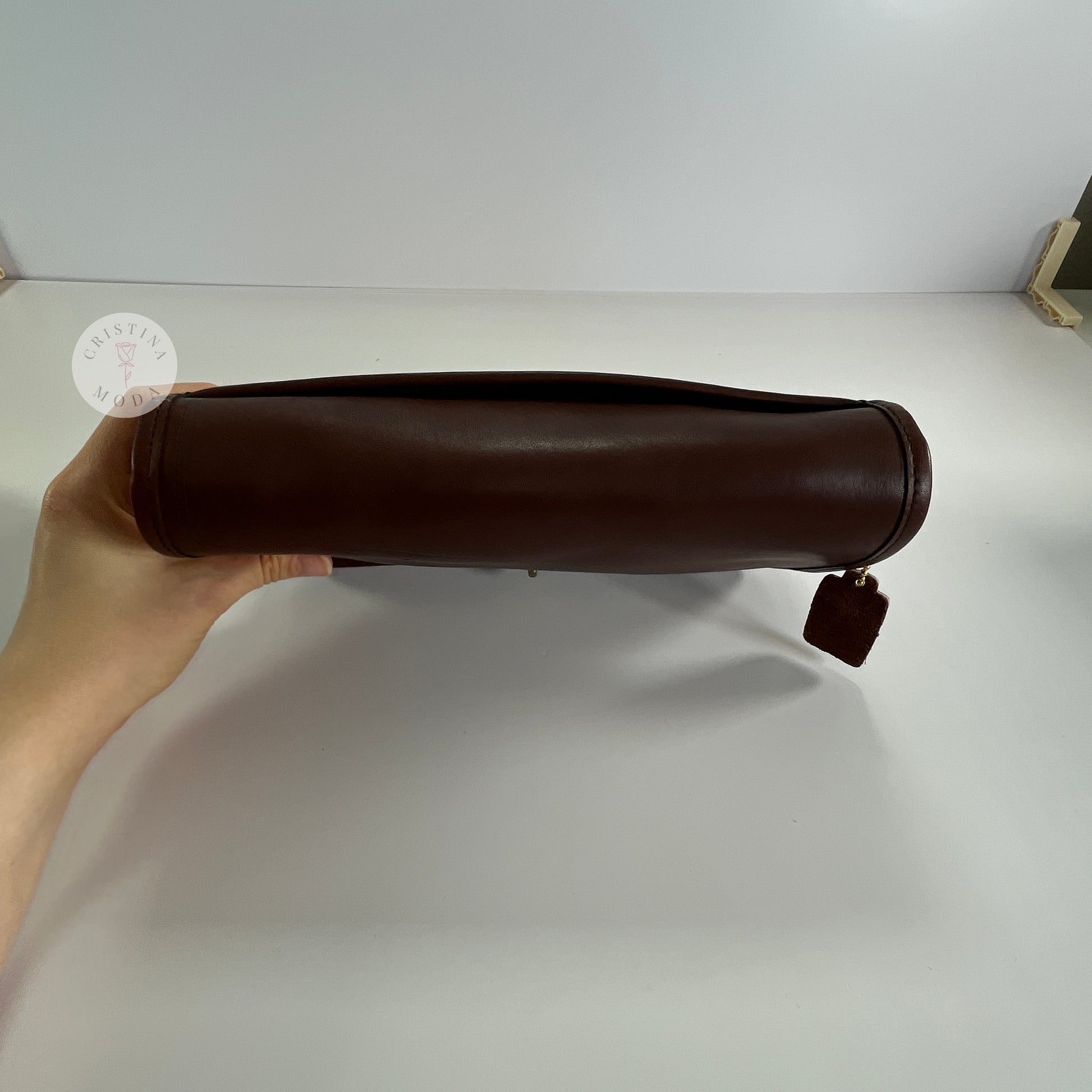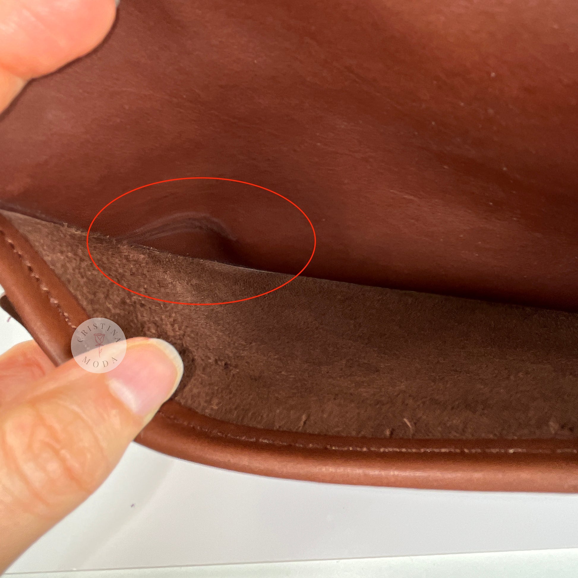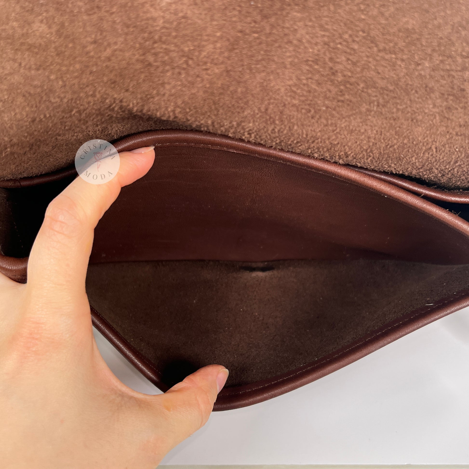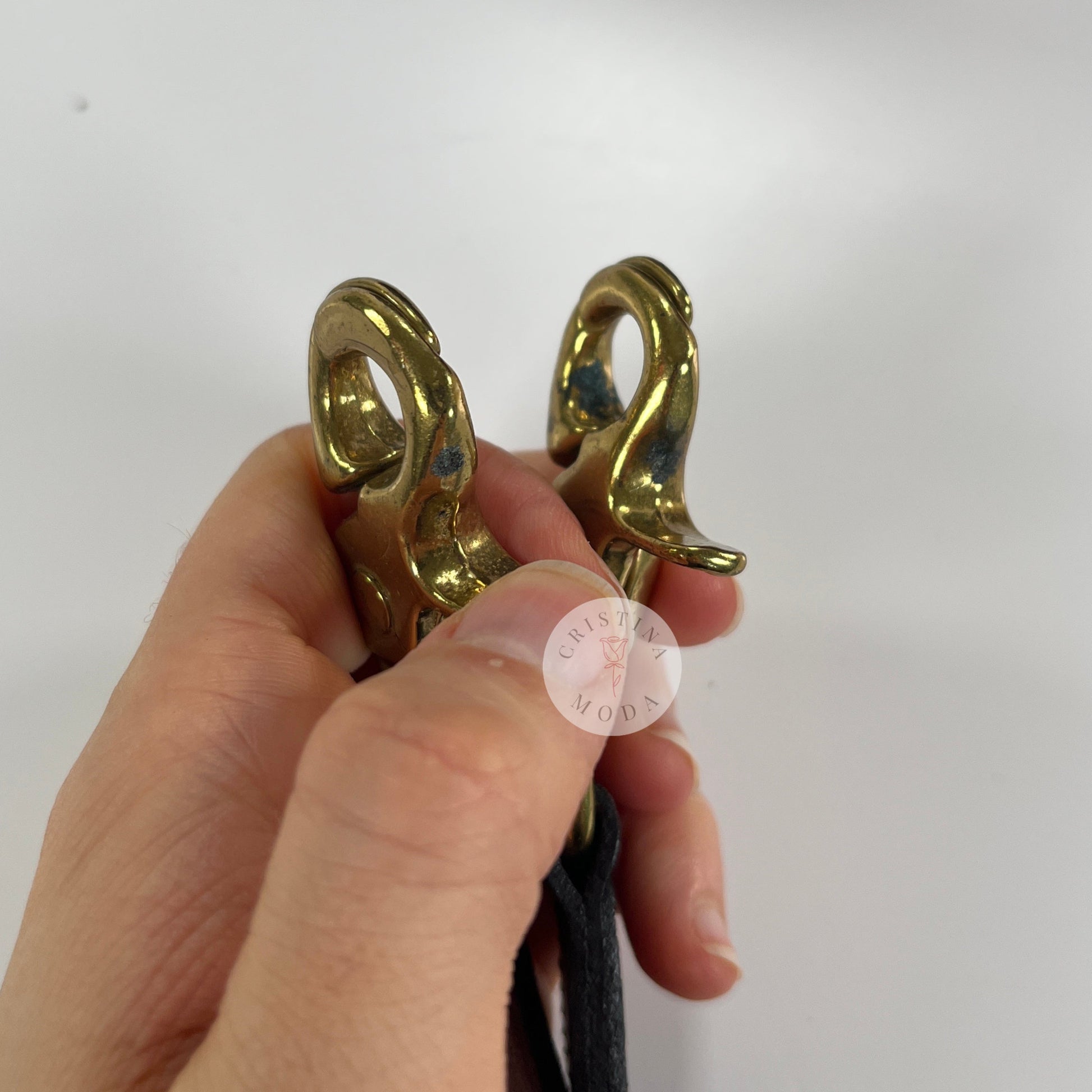 Condition- some very mild normal wear throughout, as shown in photos. Please note that there is a mark on the inside of the back pocket that appears to likely be a scar in the leather and there's some tarnish on the brass hardware, please see close up photos. Overall, very nice vintage condition!