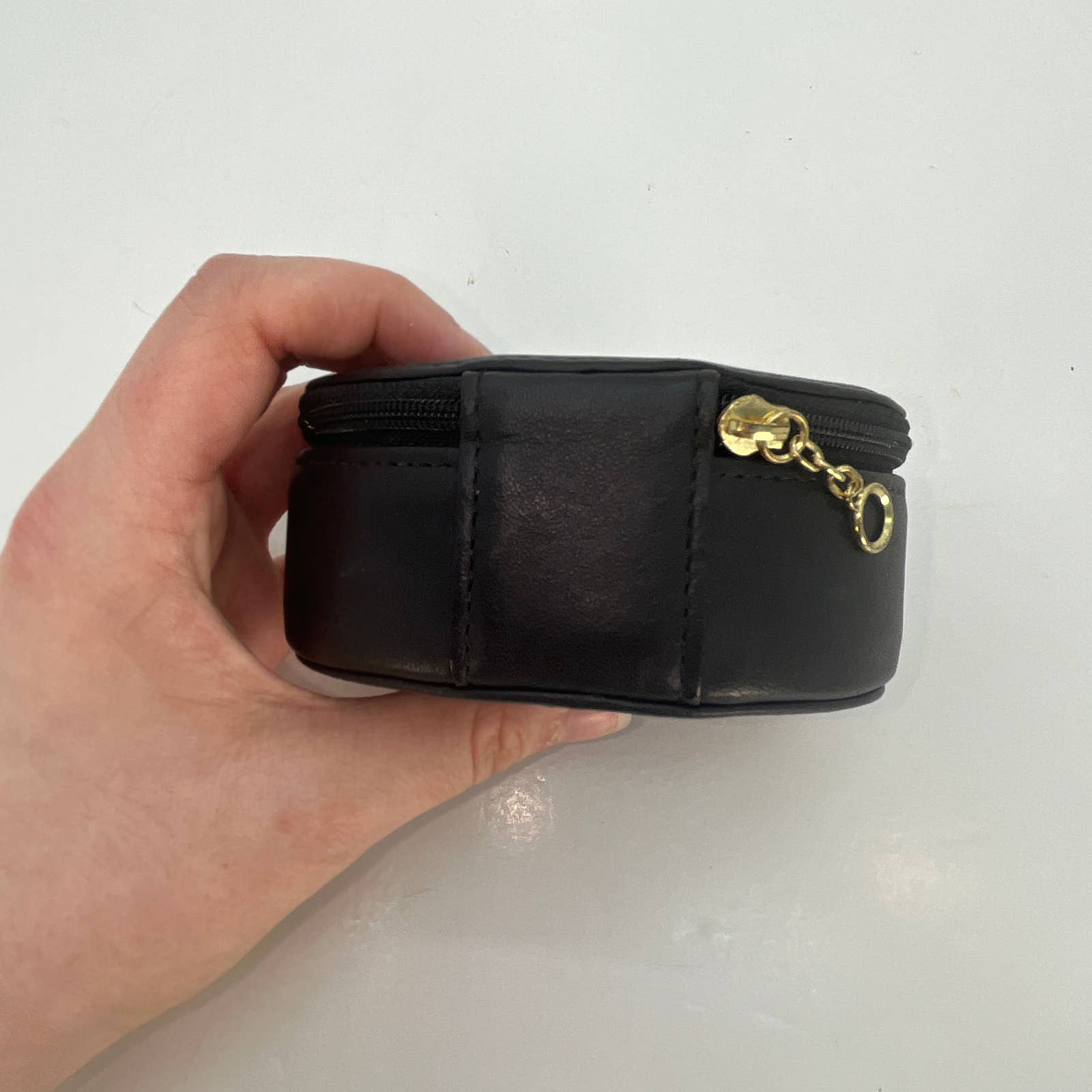Vintage Coach Round Zip Jewelry Case in Black Leather