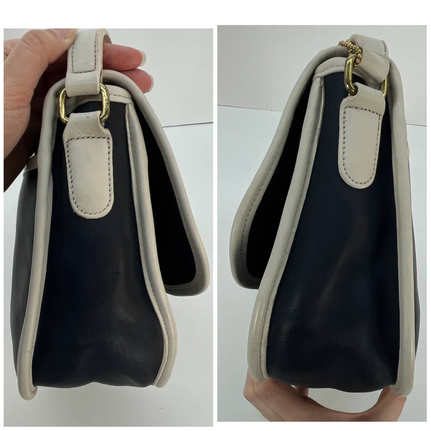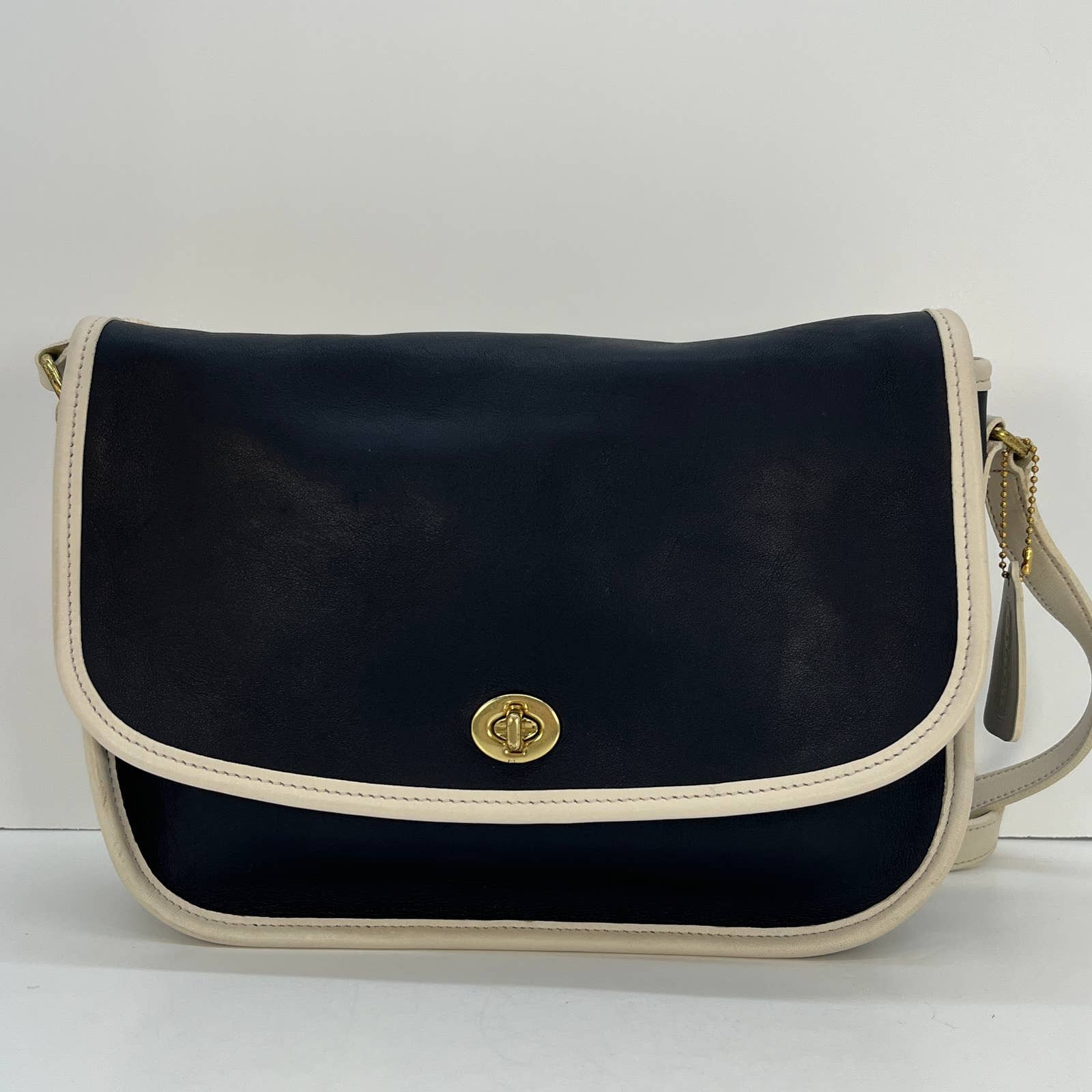 Vintage Coach #9667 Spectator City Bag in Navy & White Leather