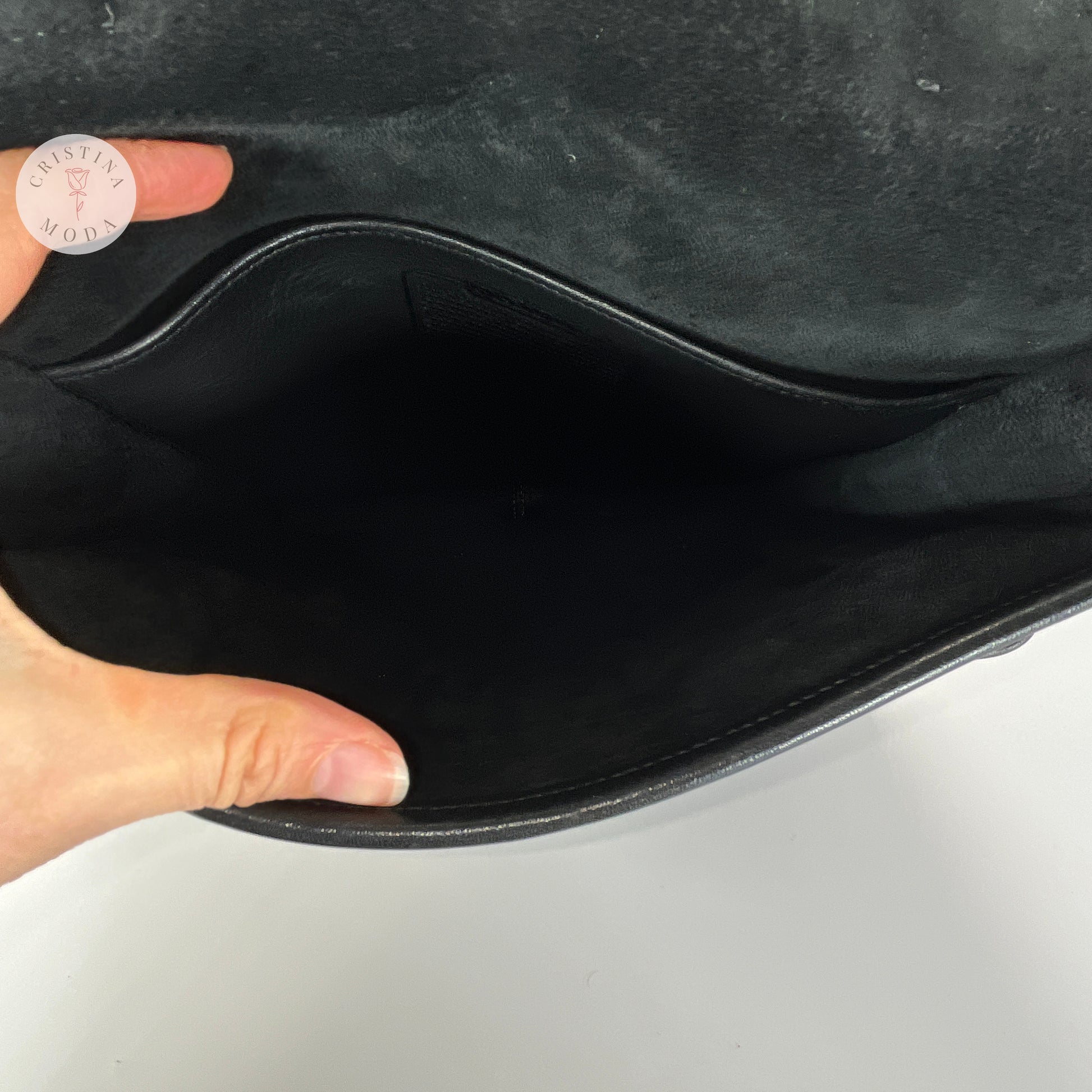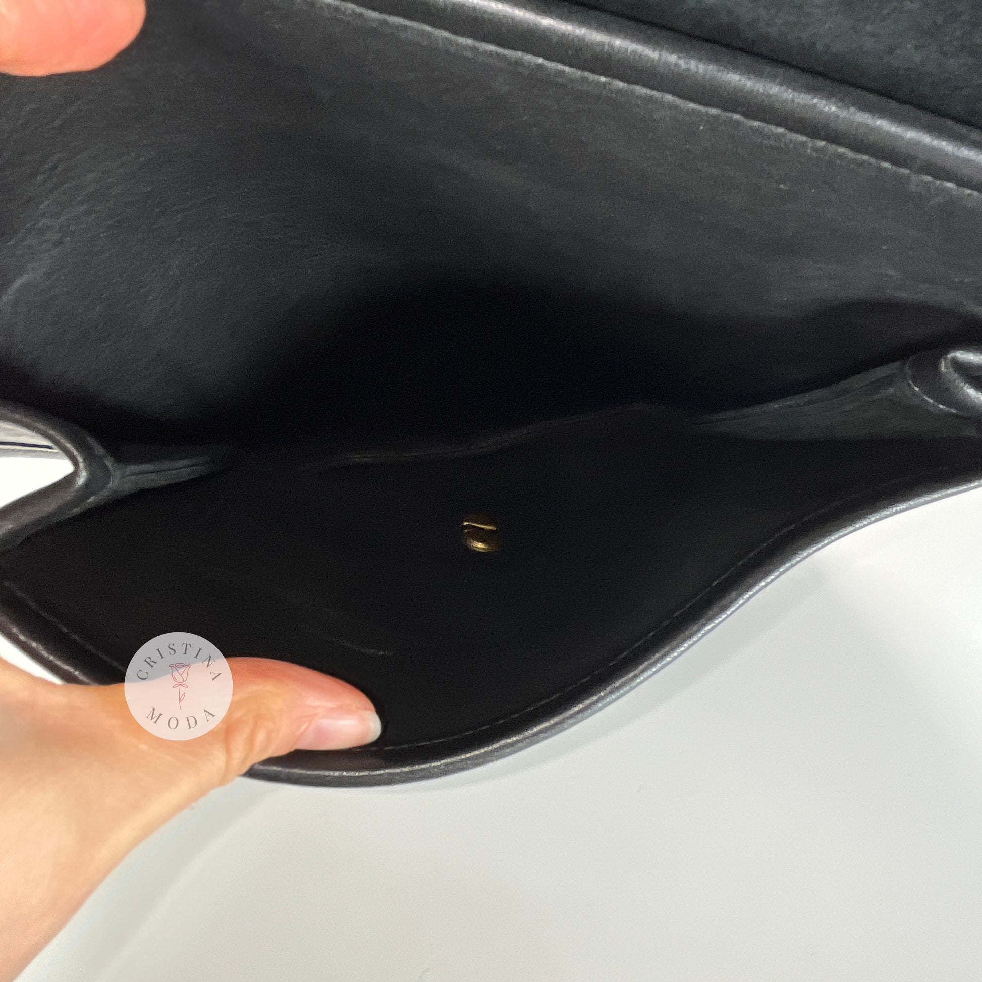 Condition- some mild normal wear throughout, please see photos. There's also a faint perfume smell that didn't come out when we cleaned and aired out the bag.