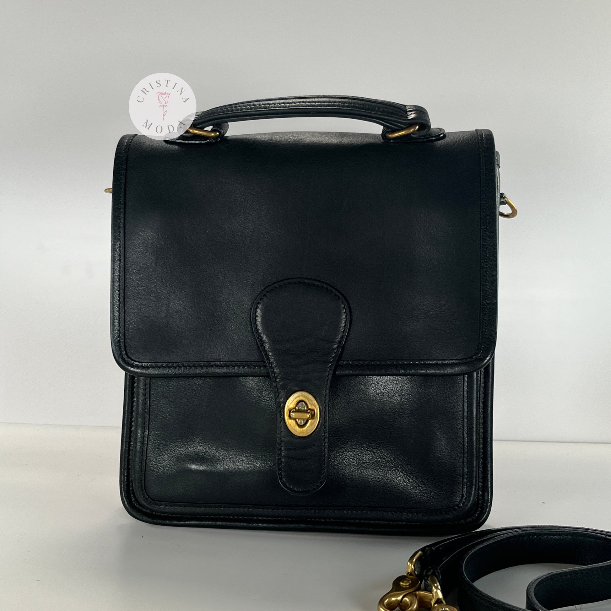 Vintage Coach #5130 Station Bag in Black Leather